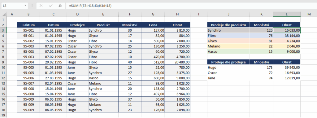 Velký rozdíl je i v práci se vzorci. Příklady vzorců opět ukazuje tabulka.